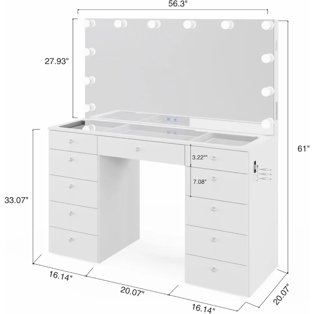 - BUILT-IN USB TYPE-C & TYPE-A PORTS AND POWER OUTLET: Simplify your routine with integrated USB ports and a 110V outlet. Charge your devices and power beauty tools directly from your vanity, keeping your space tidy and efficient.