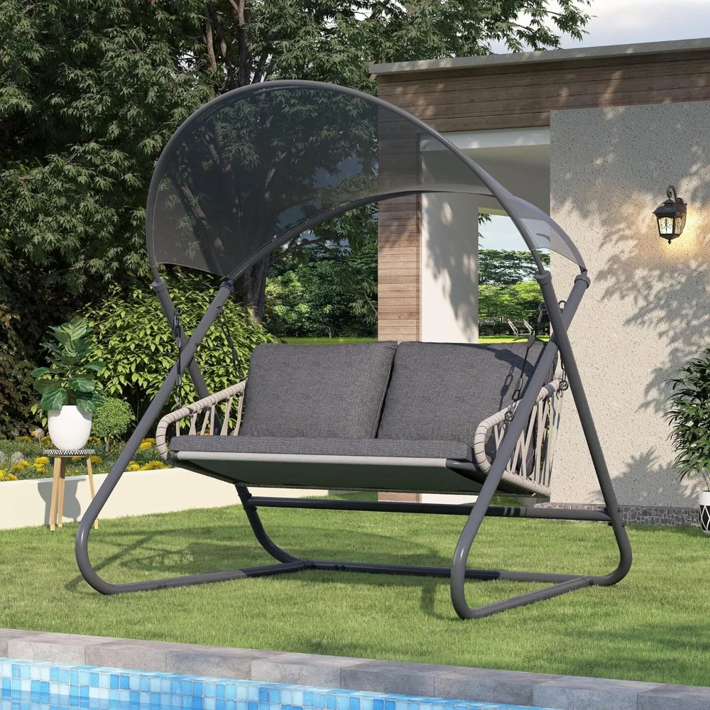 Outdoor Porch Swing, Patio Swing with Canopy, Hanging Glider Bench with Thicken Cushions and Pillow, Patio Hammock Lounge