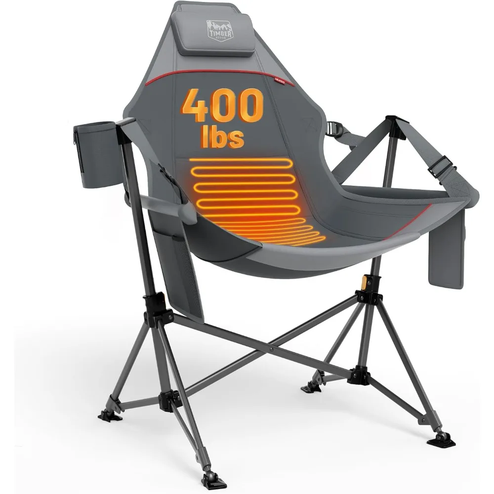 Oversized Portable Folding Rocking Camp Chair with Adjustable Backrest and Seat Height for Hammock Camping
