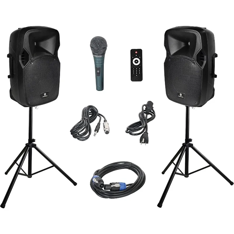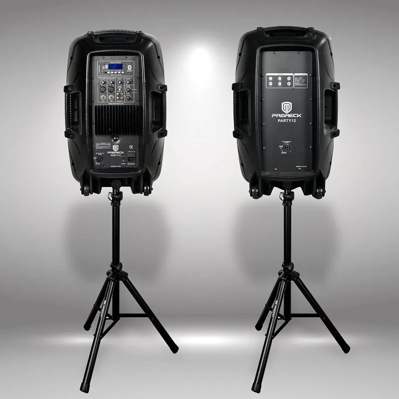 Party 12 12-Inch 1000 Watts 2-Way Powered PA Speaker System Combo Set with Bluetooth/USB Drive Read Function/SD Card Reader/FM Radio/Remote Control/Speaker Stand