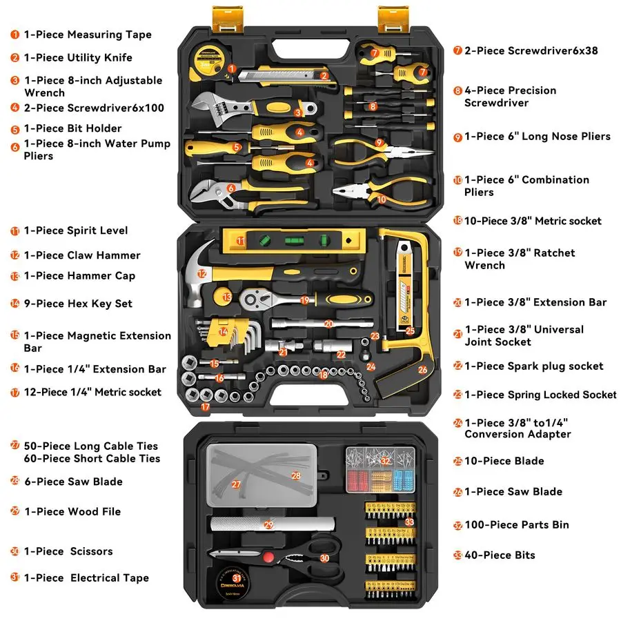 Home Tool Kit For All Purpose 328Piece Tool Set, ideal for homeowners39 daily maintenance, organization, and DIY projects, including but not limited to homes, apartments, garages, workshops, trucks, cars, and mechanic shops a highly versatile and comprehensive tool kit