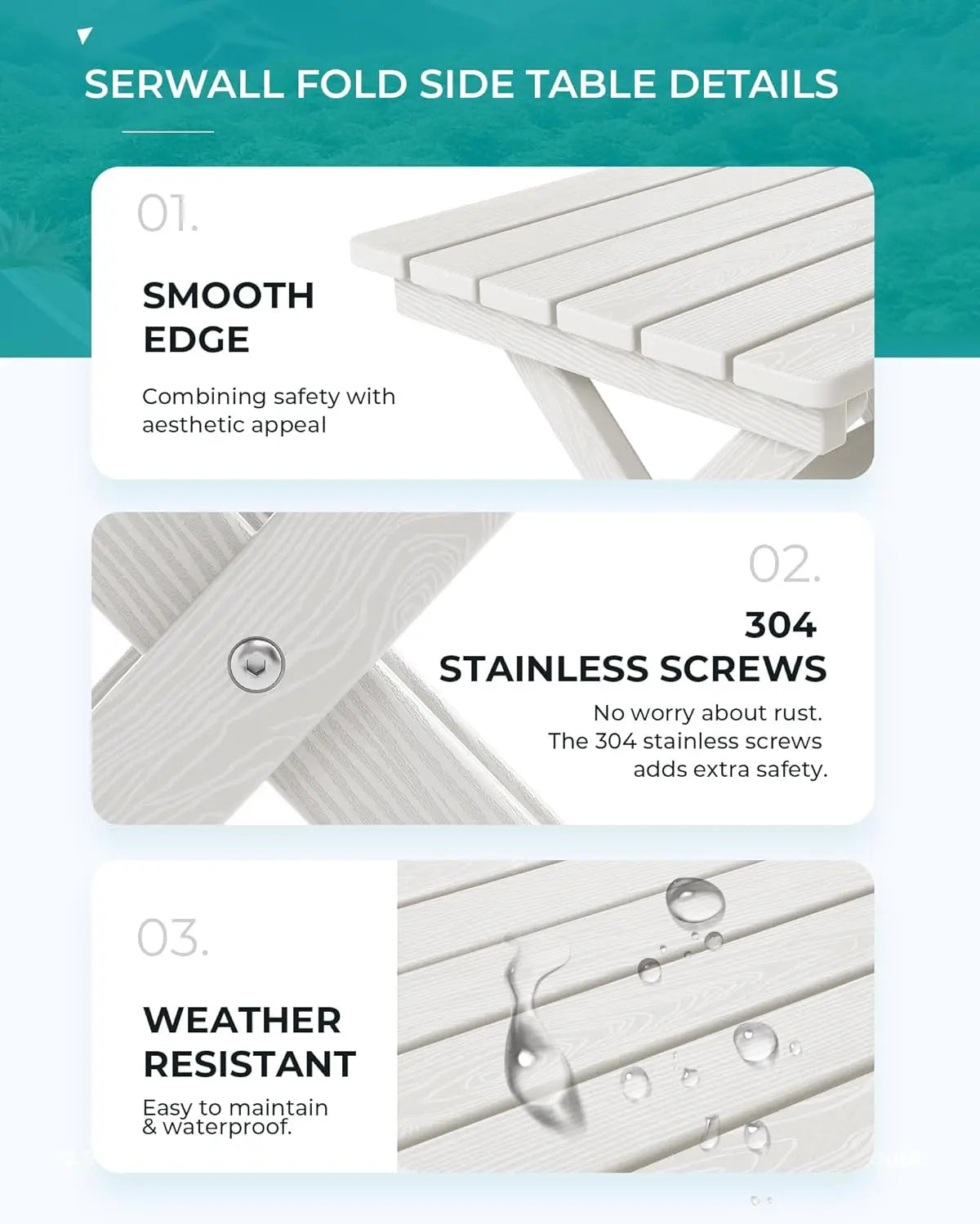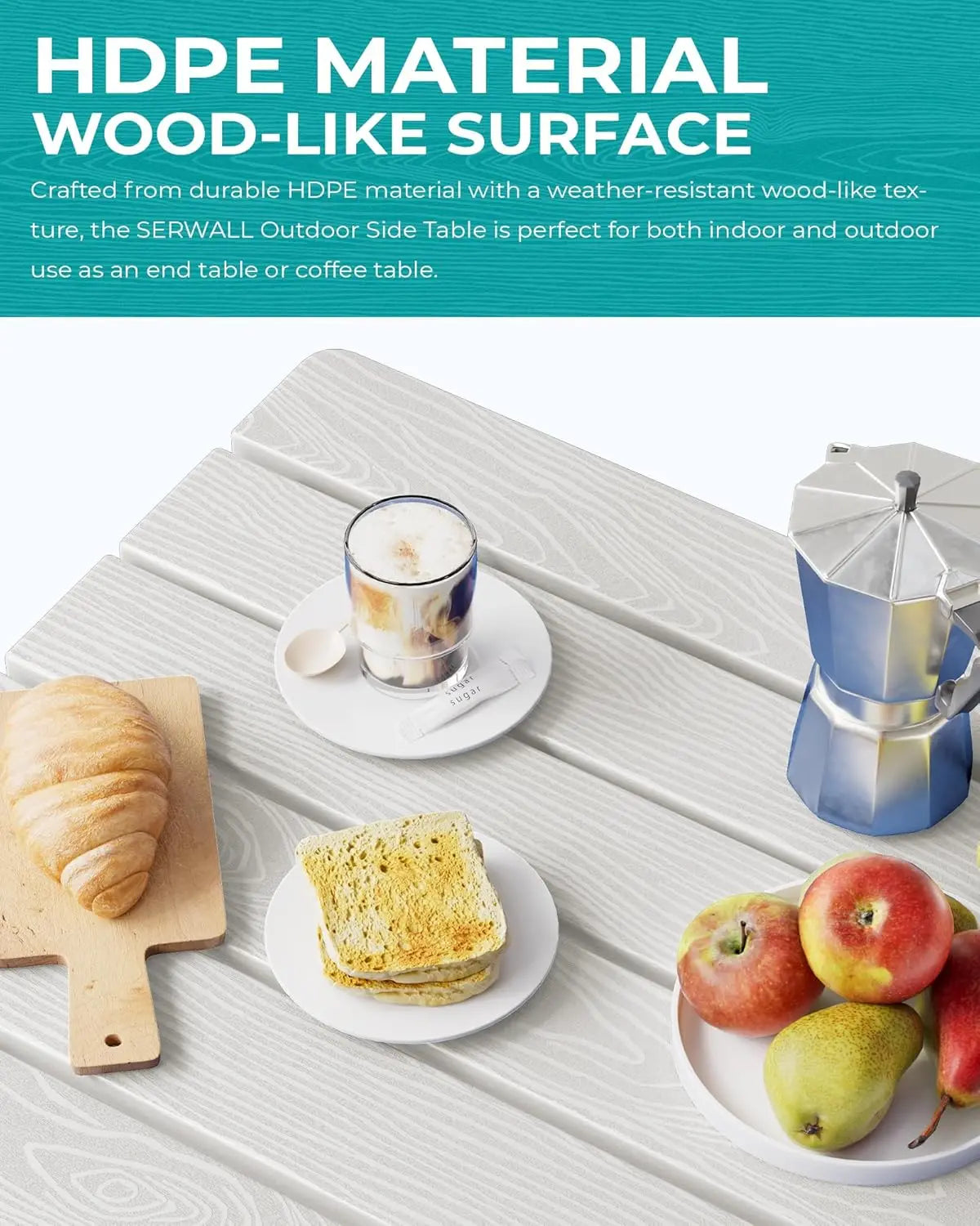 [Durable HDPE Material] Expertly constructed from high-quality HDPE, this end table is designed to withstand all weather conditions, ensuring long-term use in both indoor and outdoor environments.