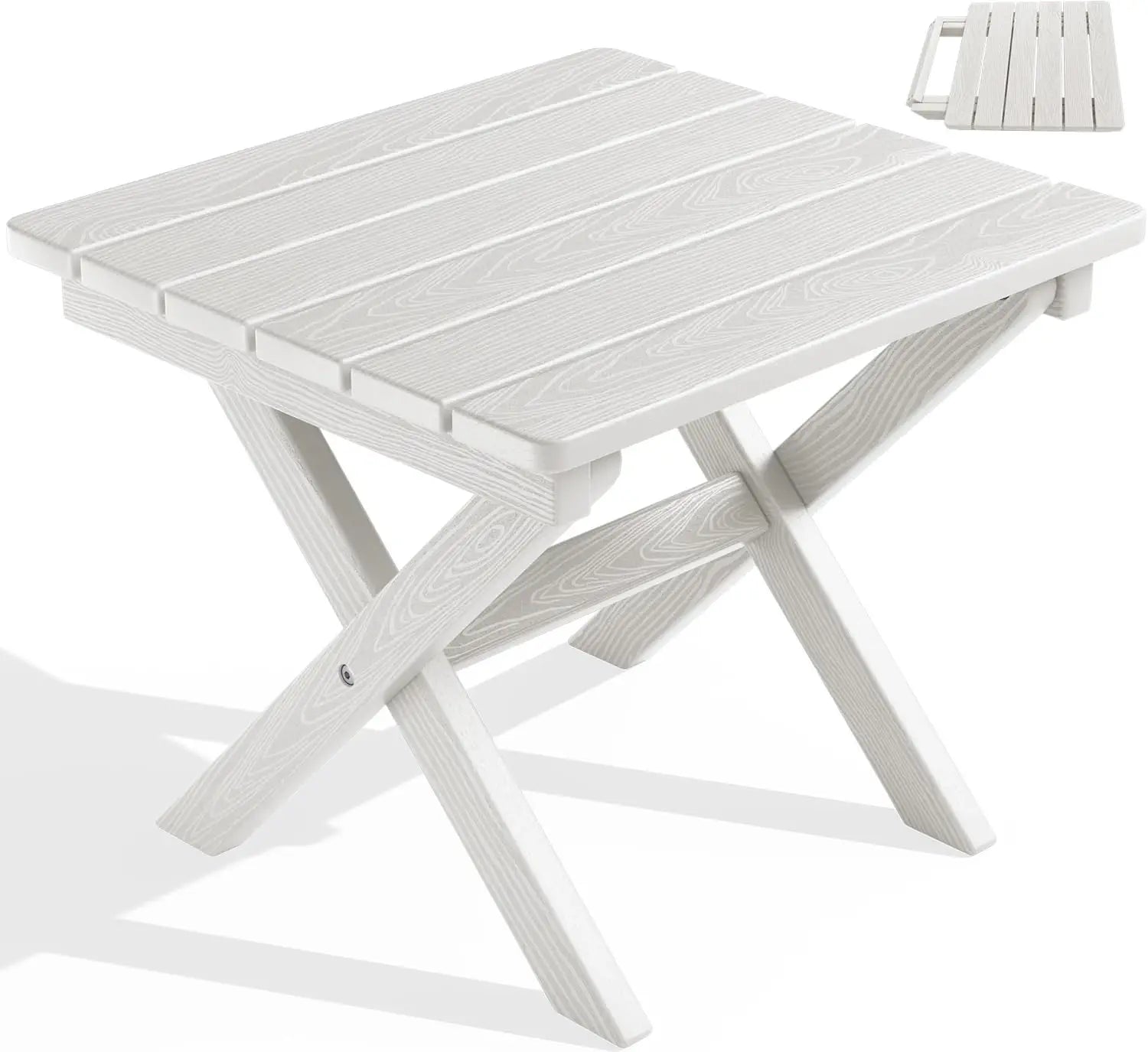 Portable Folding Adirondack Side Table, HDPE Outdoor End Table, Weather-Resistant, 110 lbs Capacity, White