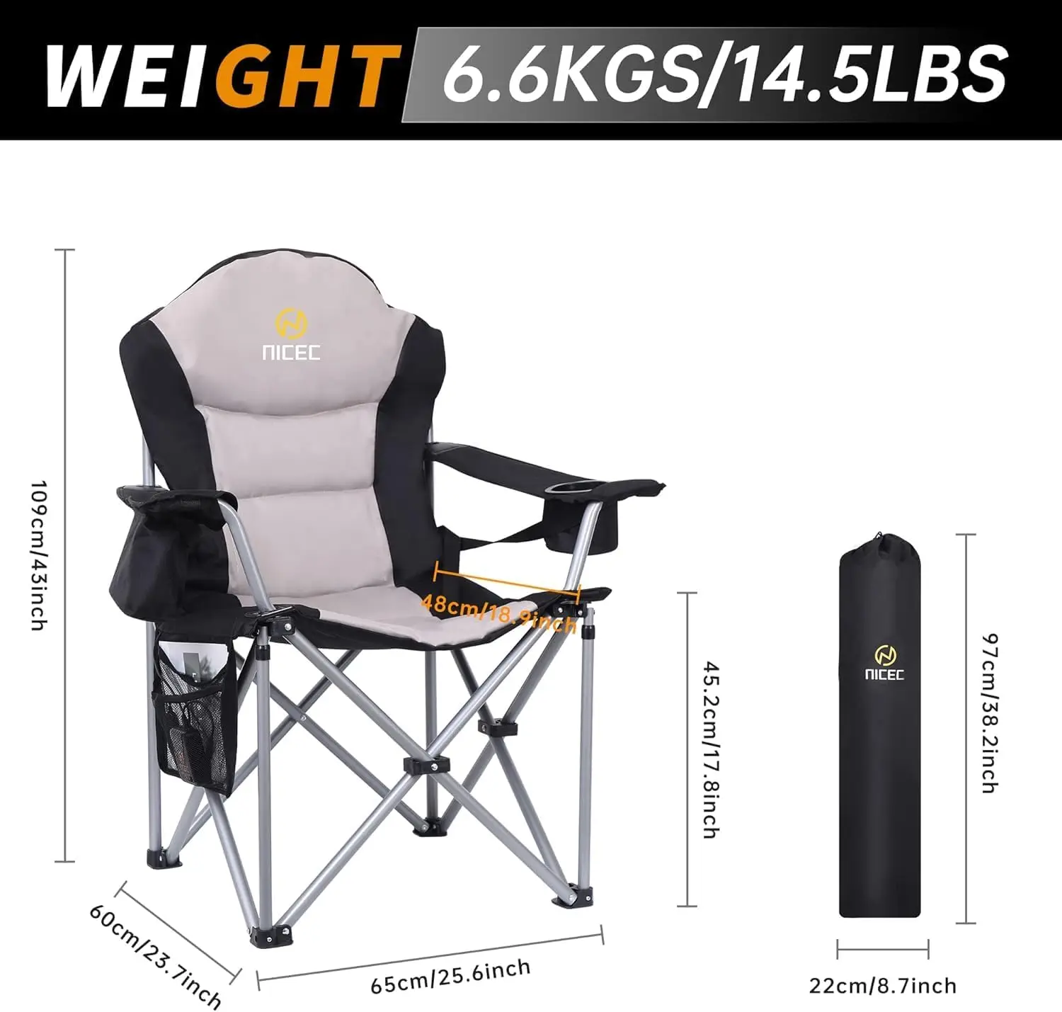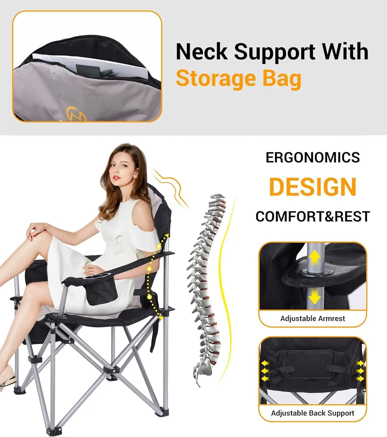Portable Heated Camping Chair with Battery, Outdoor Folding Seat for Adults, Includes Cooler and Power Bank