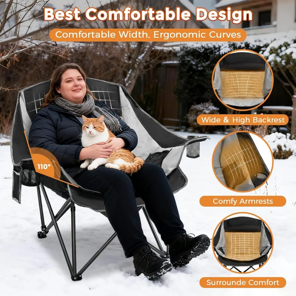 Portable Oversized Heated Camping Chair with 20,000mAh Battery, 3-Level Heat Control and Dual Heating Zones