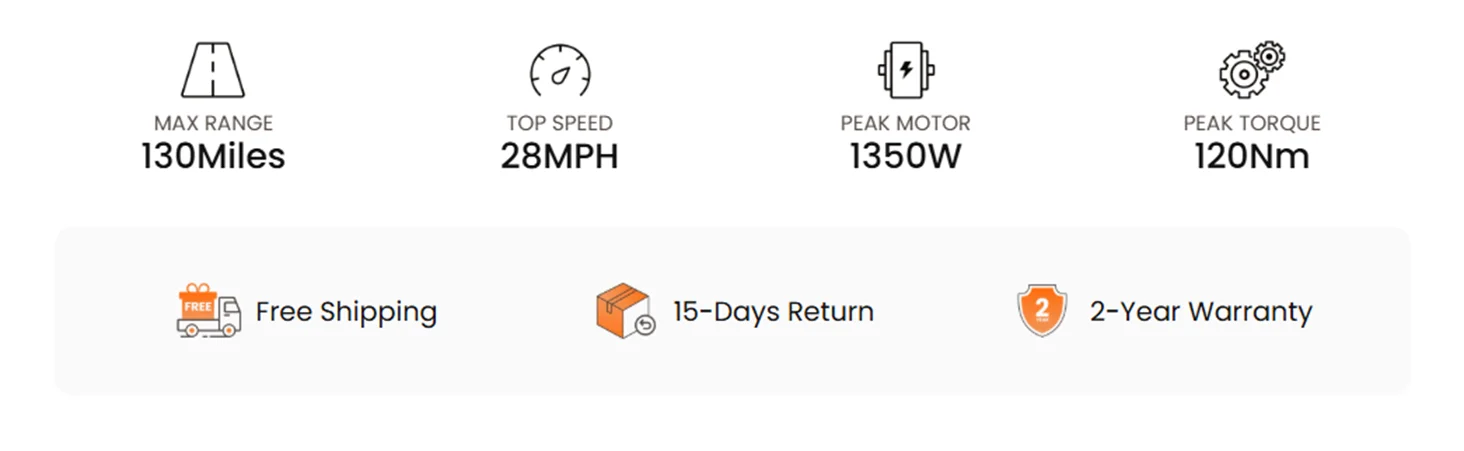 【48V 30Ah Battery & Ride Gift】Robust 2 x 15AH Removable hidden battery with 48V 2A fast charger (6-8 hours). Torque-based energy compensation delivers 60-130 miles; never worry about running out of power, you can go the distance in comfort. Included luxury pack for a better riding experience: Air pump, lock, rear rack, fender, phone mount, bottle holder, cover, and rearview mirrors!