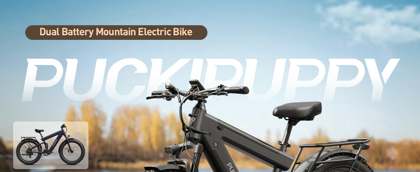 PUCKIPUPPY Mountain Electric Bike 1350W, 48V 30AH Dual Battery Ebike 130 Miles Long Range Full Suspension E bike 26" Fat Tire