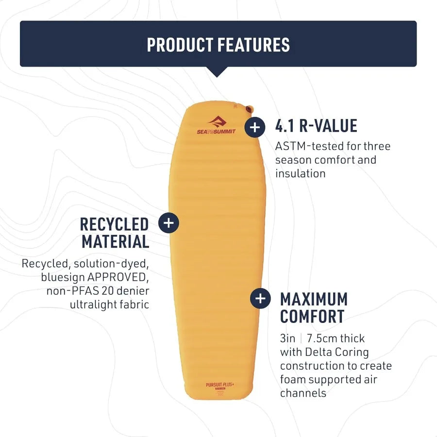 Pursuit Plus ExtraThick SelfInflating Sleeping Mat for Camping and Backpacking Rectangular Large Wide 78 x 30 x 3 inches Ideal
