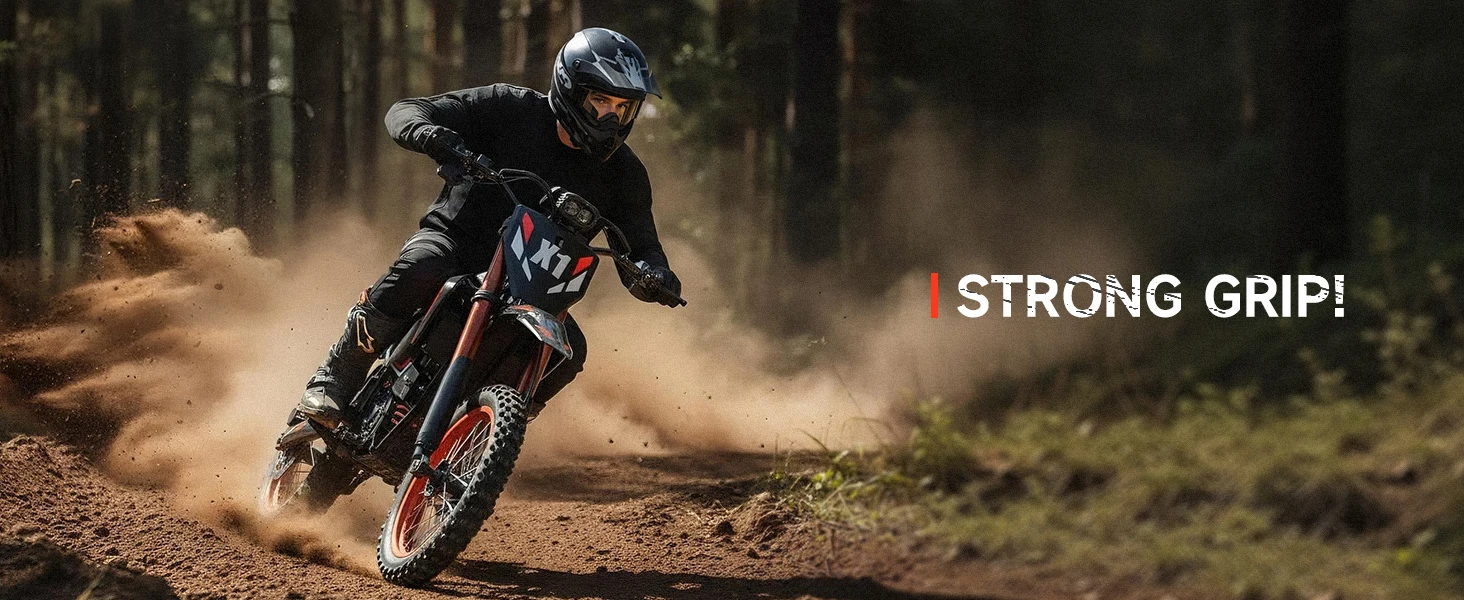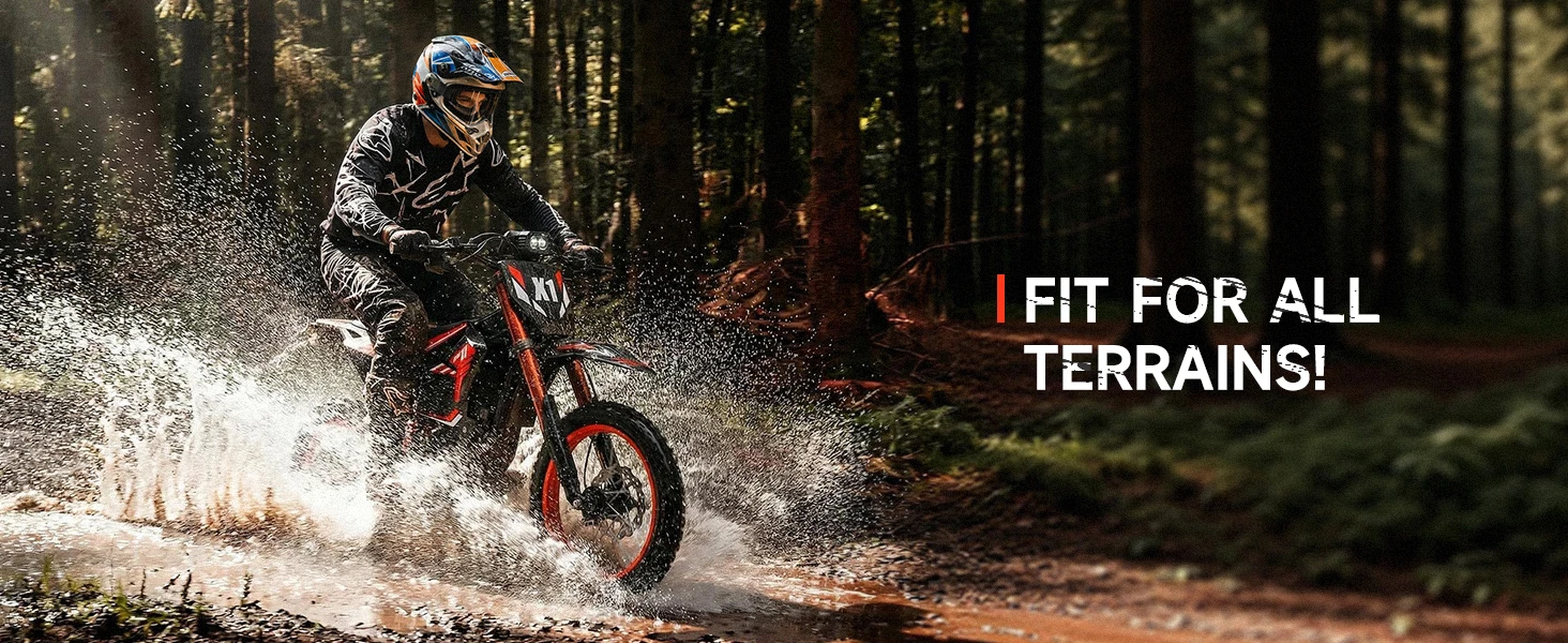 【High-Performance 4500W peak Mid-Drive Motor】This high-performance permanent magnet brushless mid-drive motor is the powerhouse of the electric dirt bike X1 Spark, delivering immense power and outstanding efficiency. With a maximum torque of 283 N·m and a top speed of 50 mph. This electric motorcycle has strong climbing ability, it lets you conquer any terrain with ease. Built with an IPX5 protection rating, it ensures stable and reliable performance even under harsh conditions.