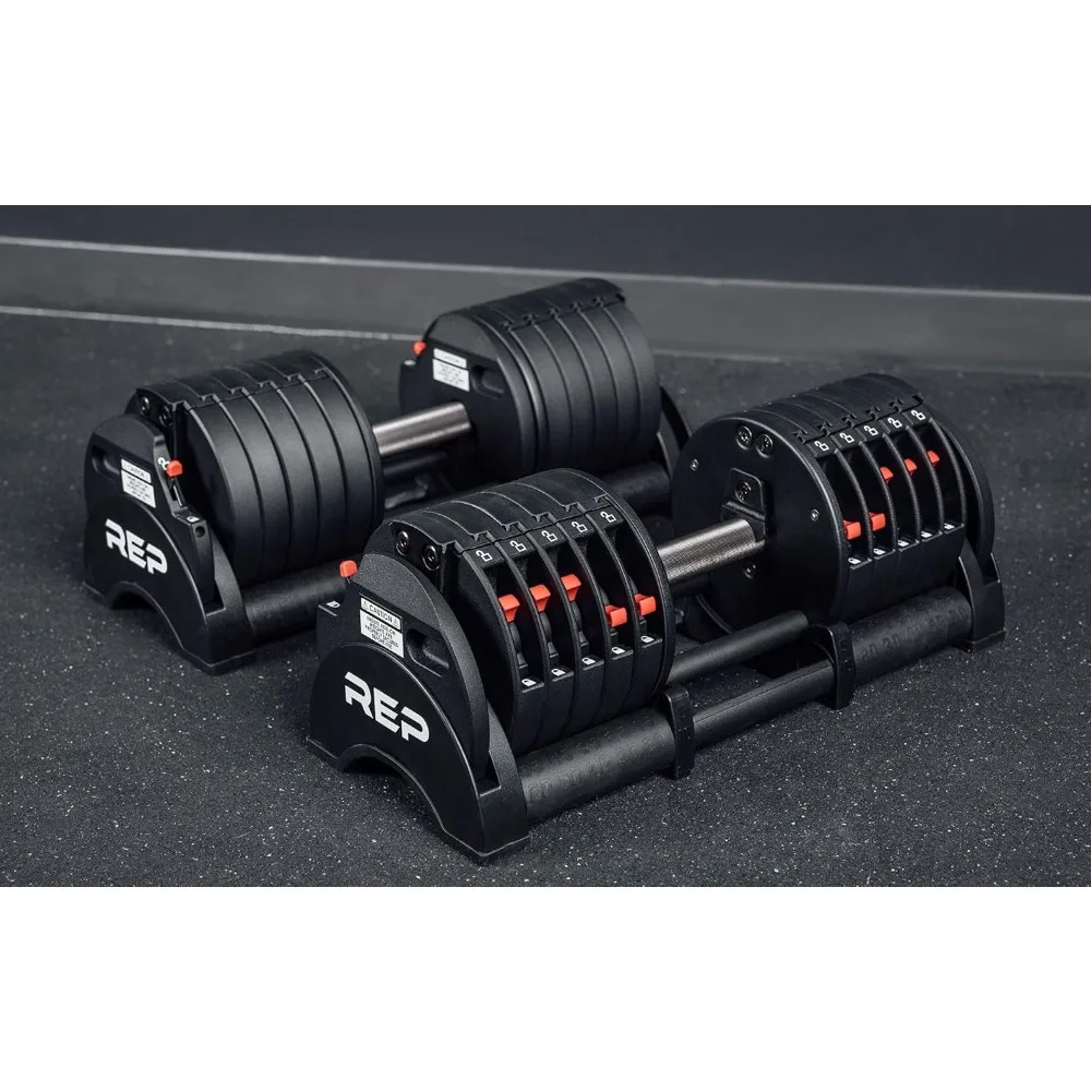 Rep Fitness Quickdraw Adjustable Dumbbells - Weight Ranges from 5 to 30, 40, 50, and 60 Pounds