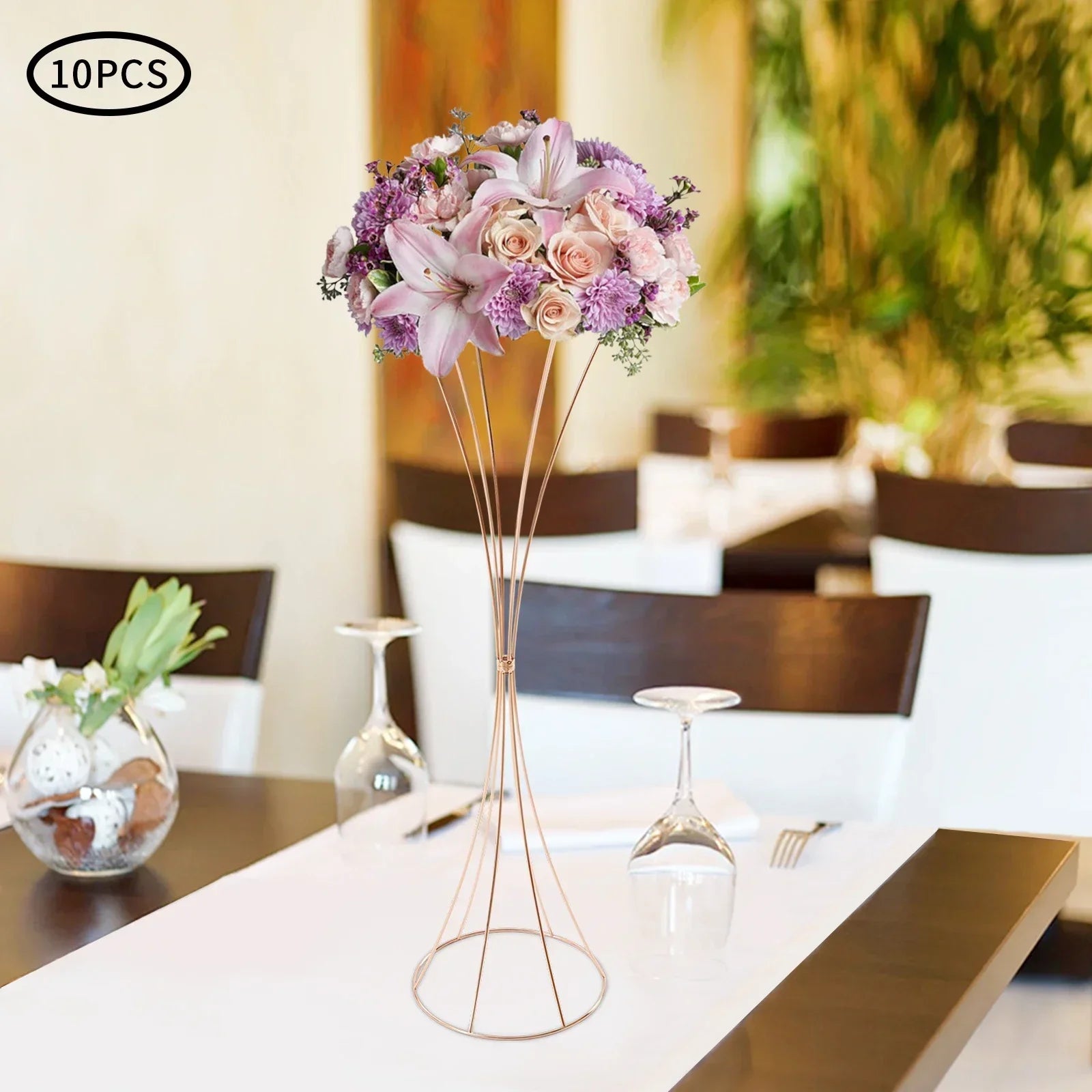 Set of 10 Gold Trumpet Vases,31.5 inches,Stackable Metal Flower Stands,DIY Floral Arrangements,Wedding Party&Dinner Decorations