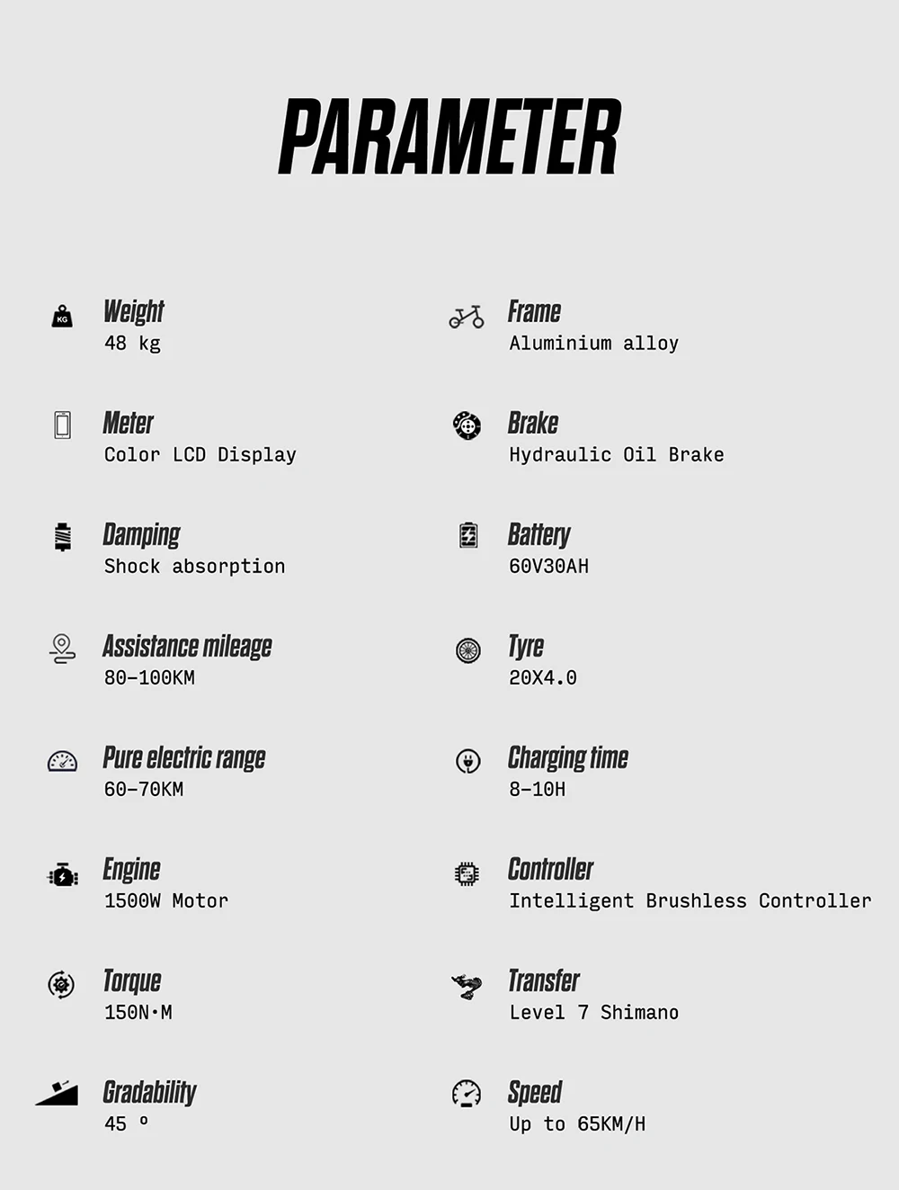 Shengmilo S900 Electric Bike 1500W Motor 60V 30AH 65KM/H electric motorcycle Off-Road Motorbike 20*4.0 Tire MTB EBIKE Oil Brake