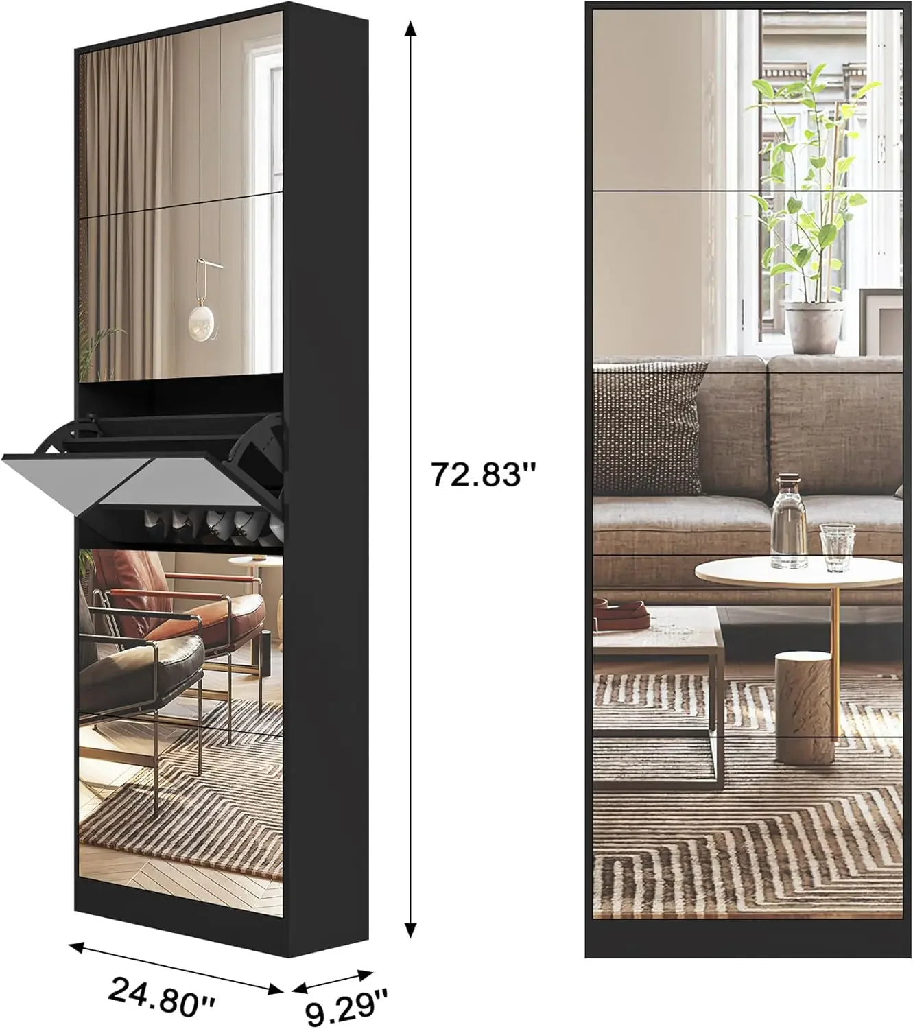 - [ 72.83" Full Length Mirror ]: The mirror doors are tightly fitted to each other with a gap of only 0.12inch, the full length mirror works perfectly and can be used as a full length mirror in the entrance. It helps check the fit of shoes and clothes as entering and exiting the home, and easy to organize your attire.