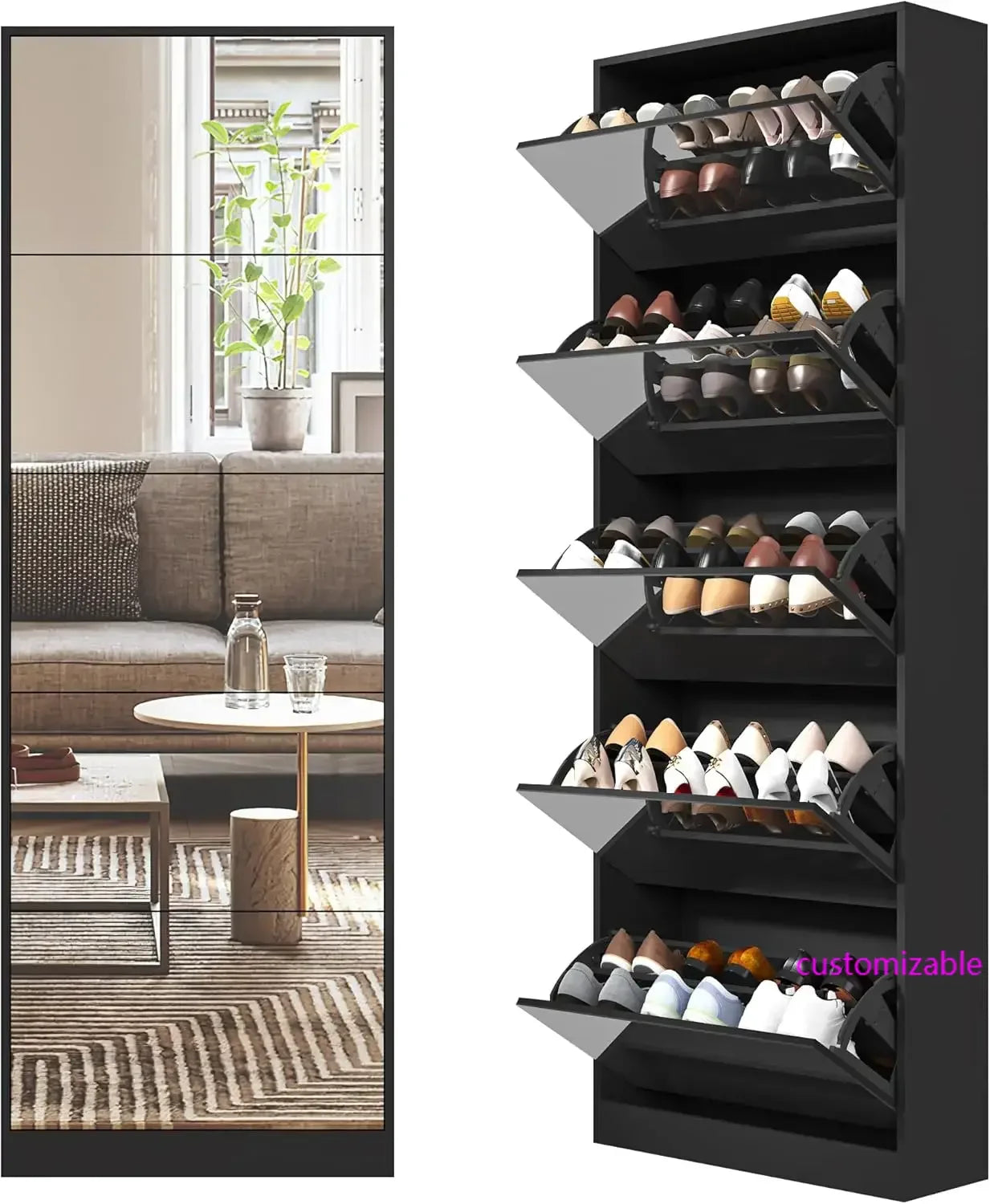 - [ Modern Shoe Cabinet ]: This innovative shoe cabinet is designed with a combination of mirrors, the unique furniture adds a distinctive charm to the home, suitable for many different home styles. Perfect for entry way, hallway, living room, bedroom or corner.