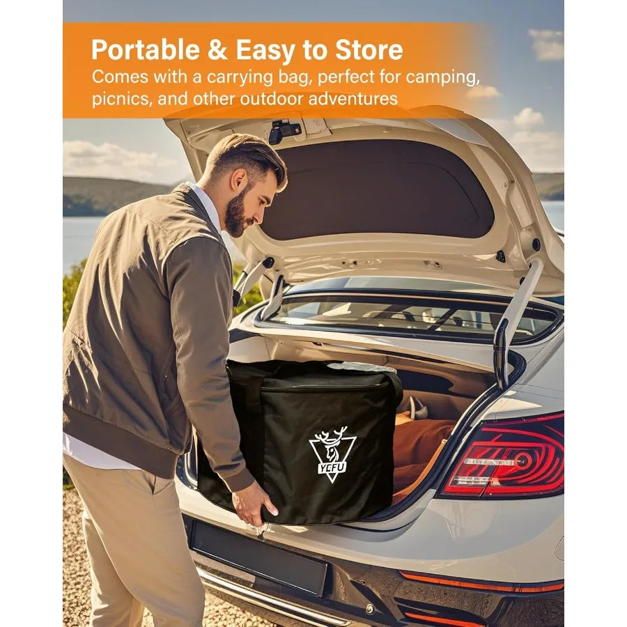 Portable Bag Included & Easy to Store: The portable fire pit is round, easy to store and carry, making it perfect for camping, picnics, and other outdoor clearance adventures. The large firepit is suitable for multiple people to gather around and it ignites easily, you can enjoy a campfire without the hassle.