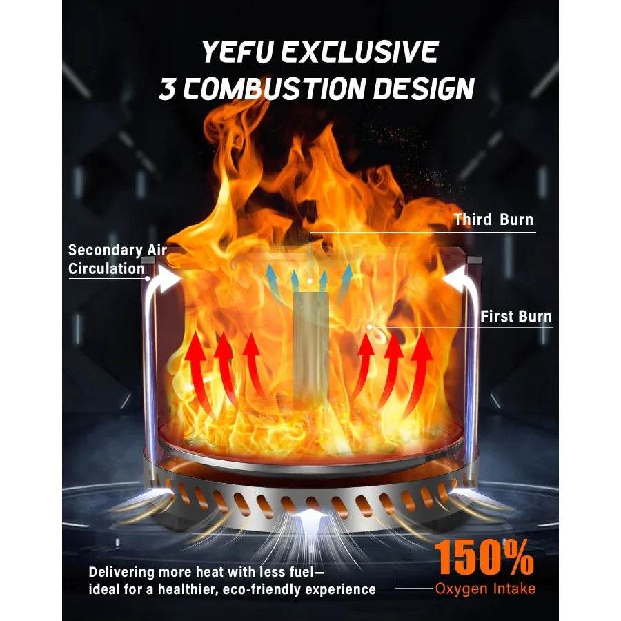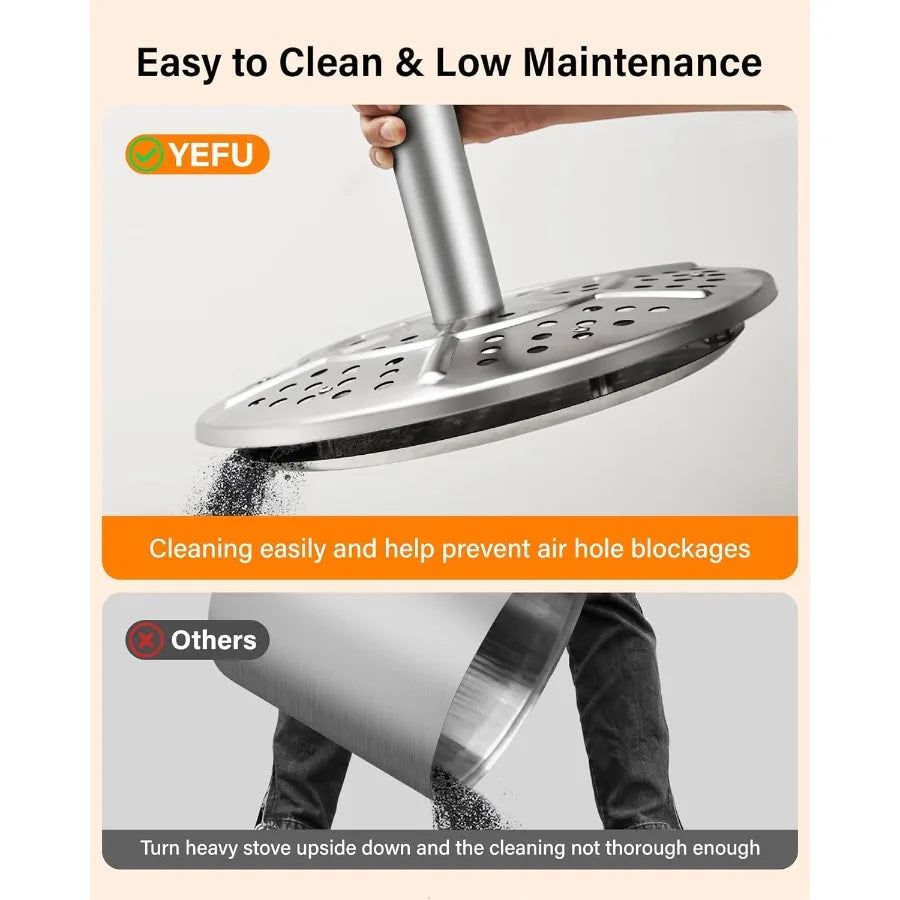 Warmer & Fuel Efficient: YEFU fire pit in large size features an exclusive 3-combustion technology for efficient wood burning, delivering more heat with less wood and pallet fuel. Enjoy a cozier, smoke-free fire without smoky clothes or irritation with the smokeless firepit — ideal for a healthier, eco-friendly experience, even in winter.