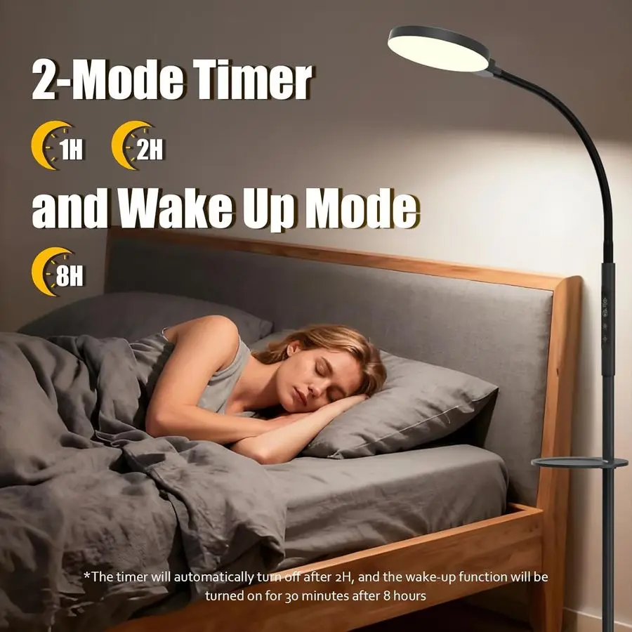 DUAL CONTROL AND TIMER FUNCTION Equipped with touch and remote control, adjust the light both up close and from a distance. For added convenience, it has 1H and 2H timer settings, and an auto Wake Up Mode that turns the light on for 30 minutes after 8 hours. You can adjust the color temperature and brightness from any angle and switch among 5 scene modes including leisure, work, breastfeeding, reading, and night light remotely. It39s a great choice for those searching for led floor lamps