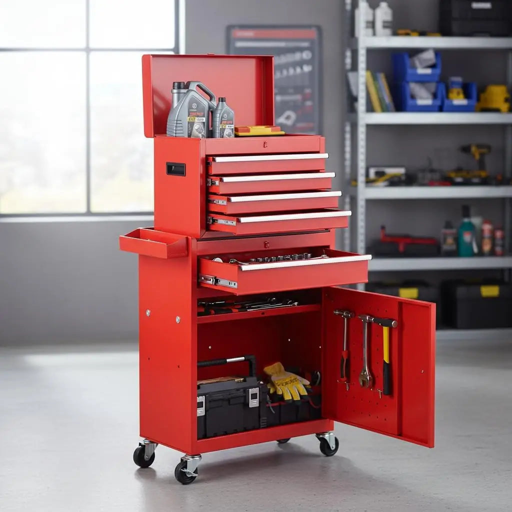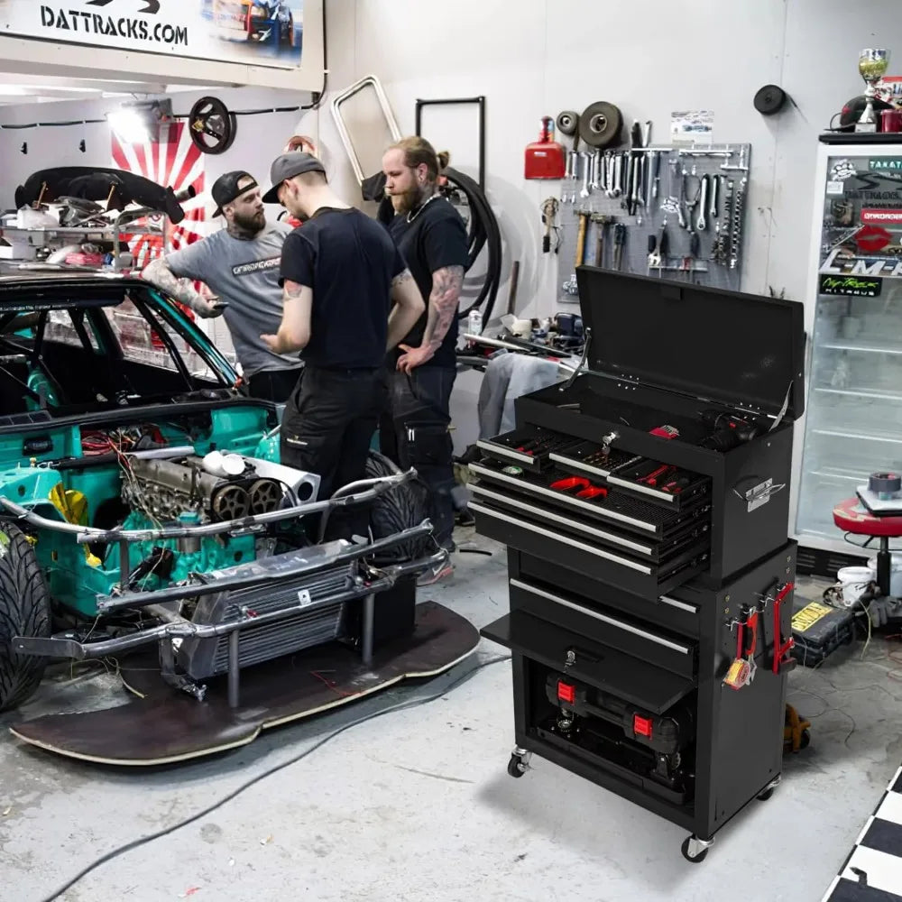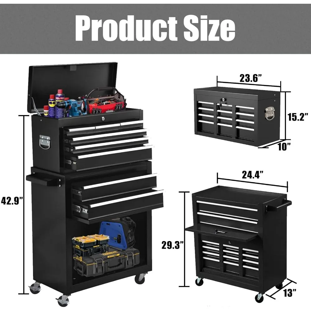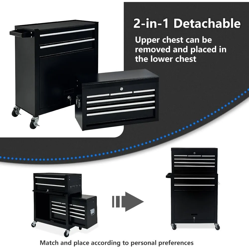 Tool Box Organizer with Lockable Wheels, Sliding Drawers, and Detachable Top, Garage Workshop Tool Storage Cabinet