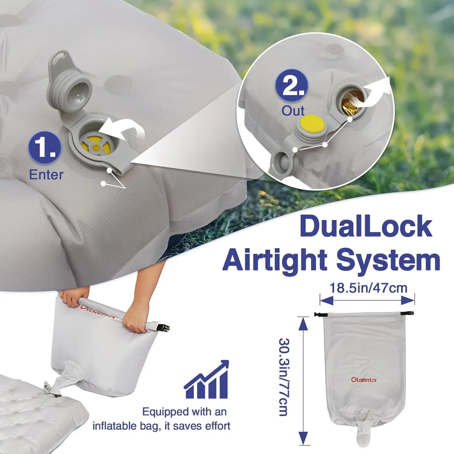 ULTRALIGHT & DURABLE MATERIALS: Crafted from ultralight double ripstop nylon with aviation-grade TPU lamination, is both durable and waterproof. The two-in-one valve allows for fast, hassle-free inflation and deflation: open the outer layer for one-way inflation with minimal air loss, or open both for rapid deflation—perfect for setting up and packing up quickly.