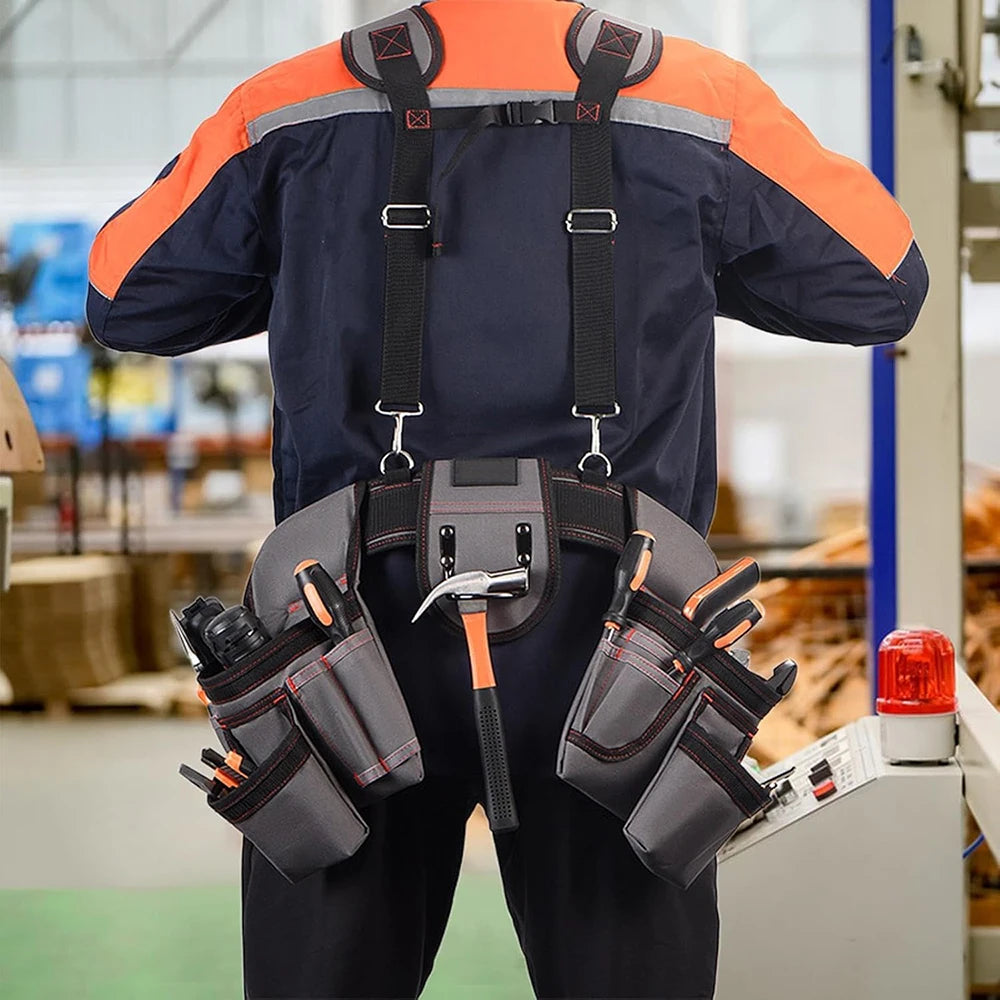 Built to Last: Made with sturdy reinforced seams and heavy-duty nylon and polyester, this tool belt with suspenders is built to last in any challenging working environment, providing both comfort and strength.