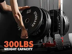 Plate-loadedweight customize your weight load by adding weight plates, with a maximum capacity of up to300 lbs.