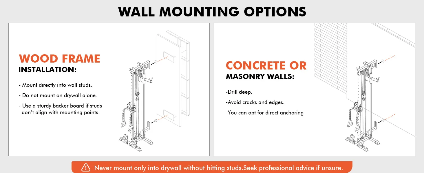 Wall Mount Cable Station, Crossover Machine with Dual Pulley System Positions for Home Gym Fitness Equipment