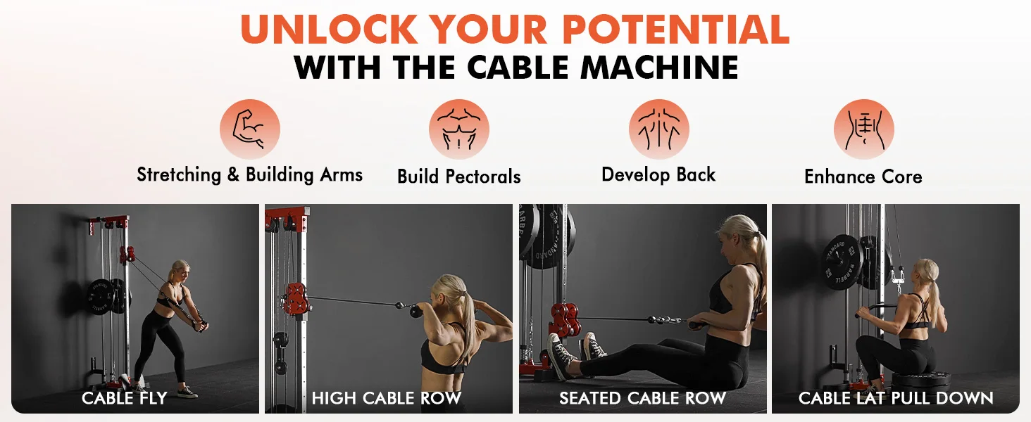 Quickly change cable anchor with a pin lock.Maximize versatility and elevate your workouts!