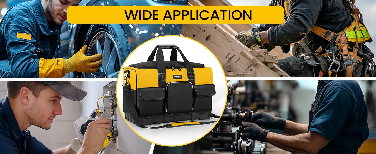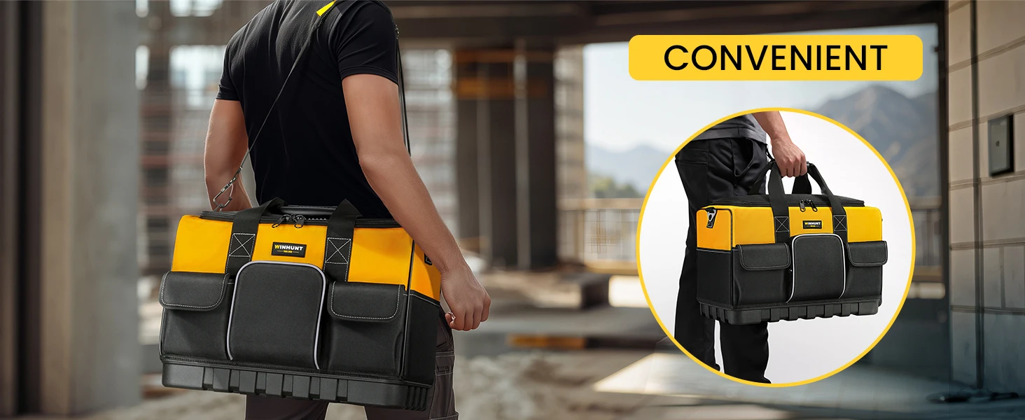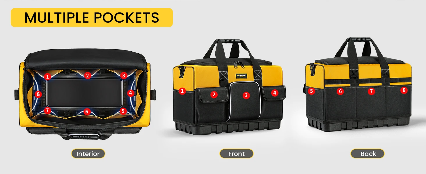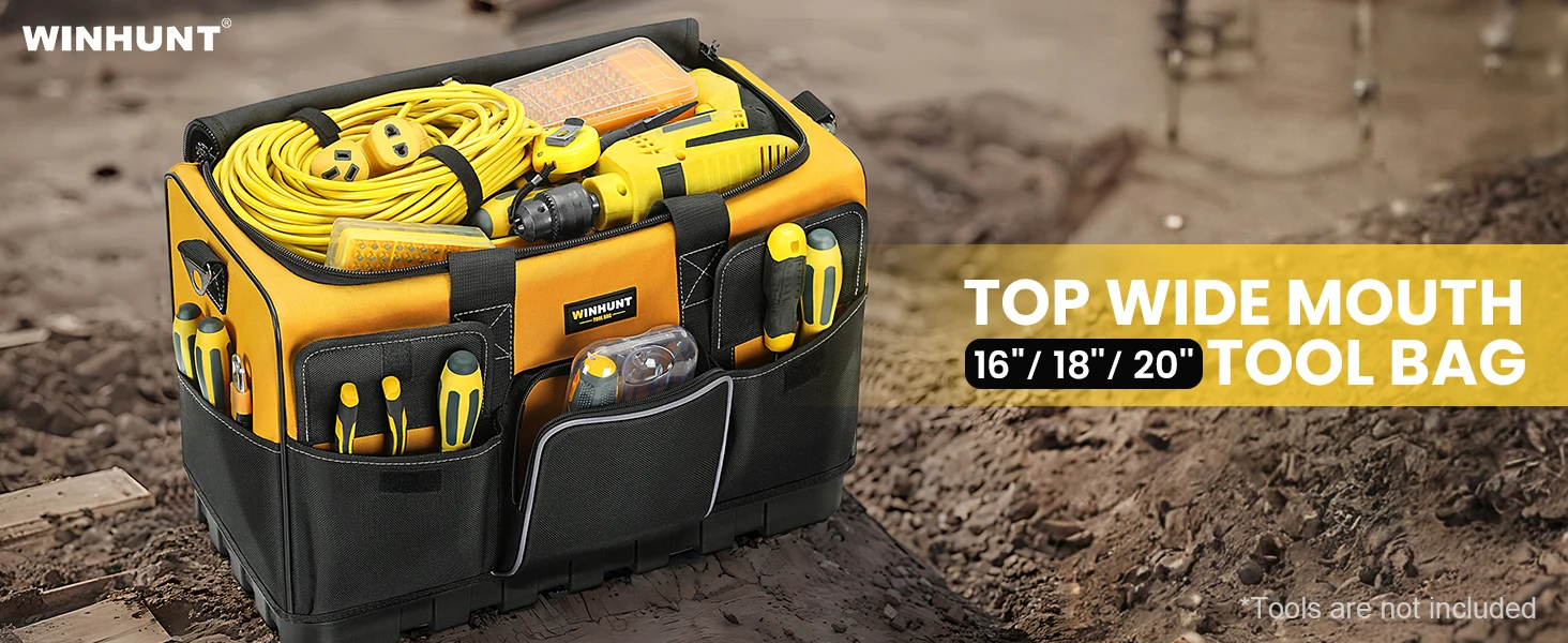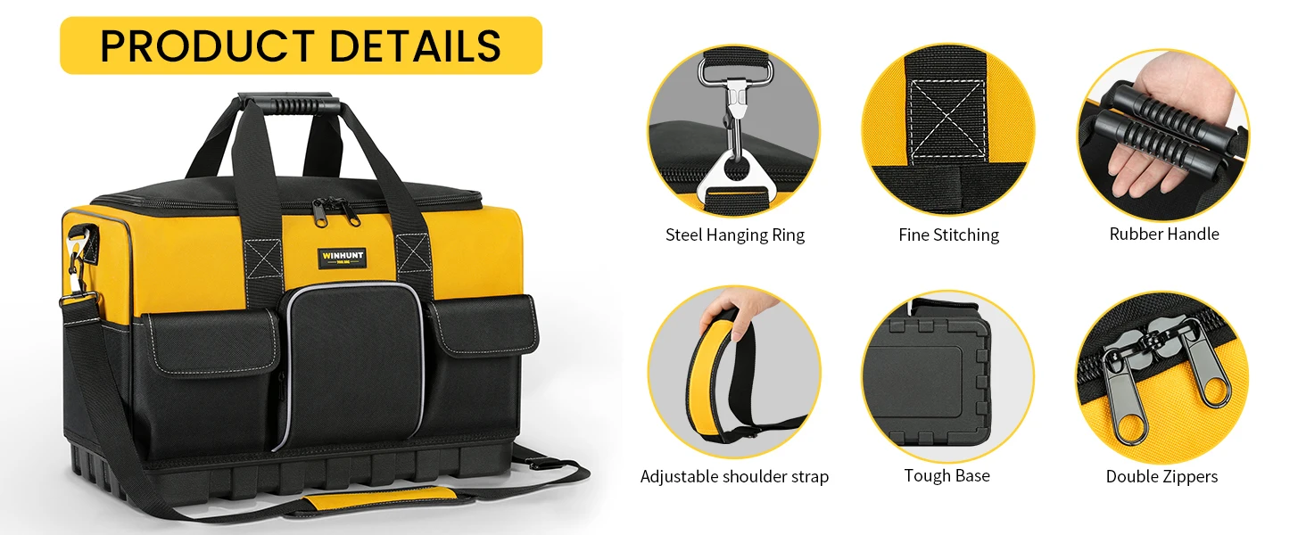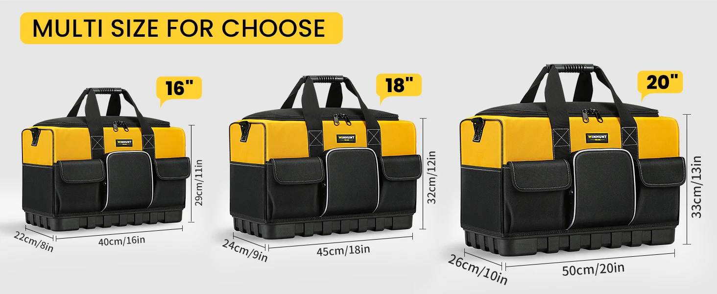WINHUNT Tool Bag, 18-inch Tool Organisers, 600 Denier Large Tool Bag for Home DIY & Equipment Storage, Yellow and Black